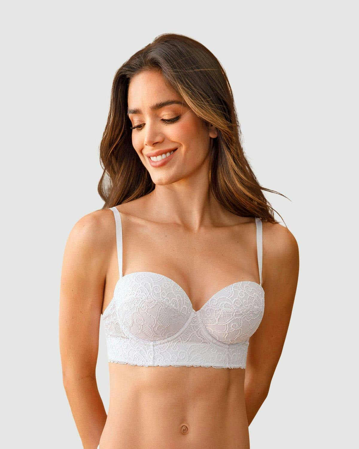 - Cargaderas removibles para uso convencional, cruzado, halter o strapless.