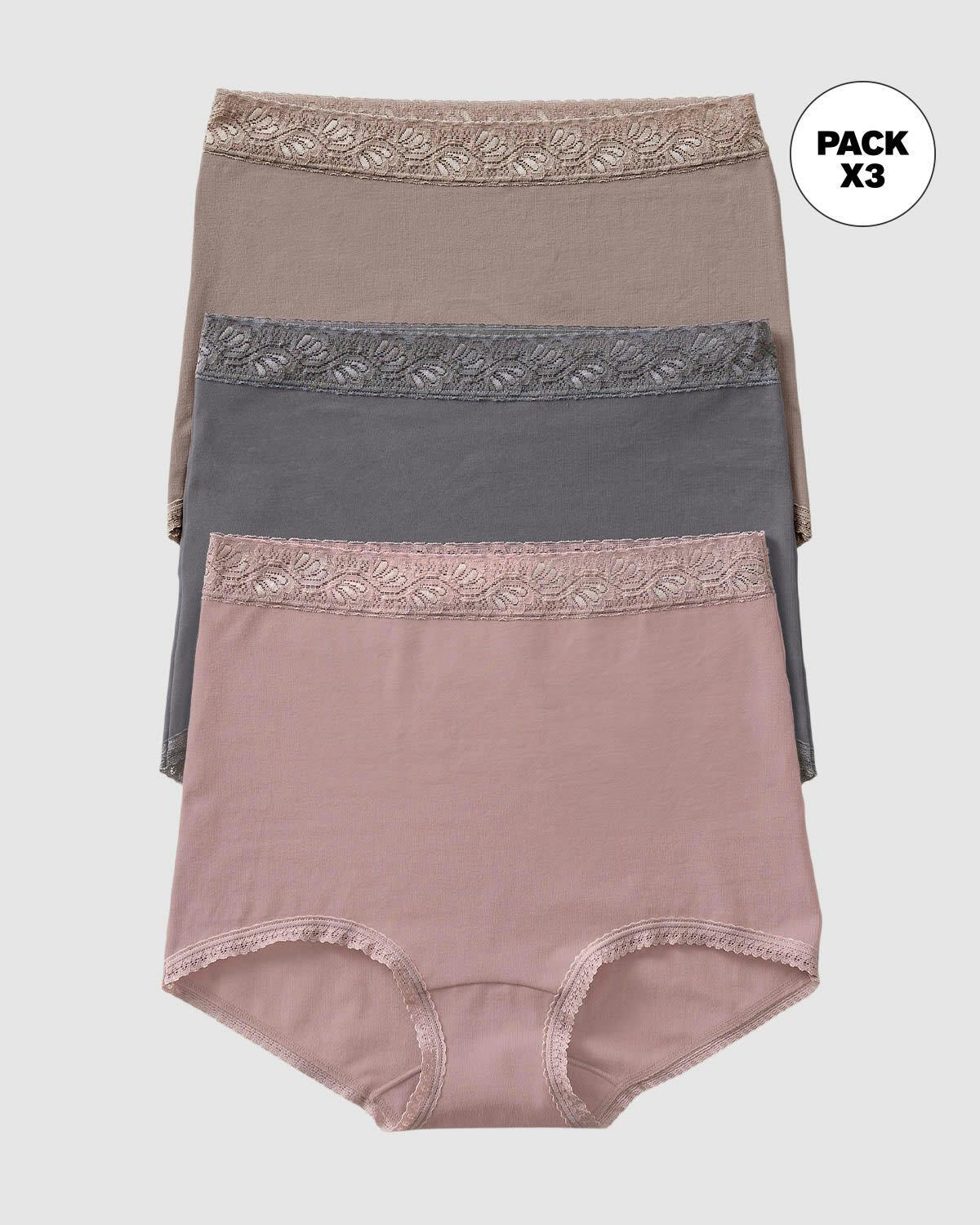 Paquete x 3 panties clásicos de ajuste y cubrimiento total
